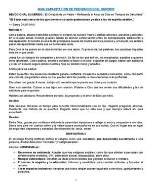 Esta guía es de apoyo para las personas que implementarán la capacitación de Prevención del Suicidio